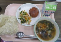 ★今日のメニュー★・ゆでスパゲティ・牛乳・ミートボール入りトマトスープ・チキンナ...