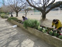 本日、PTA環境委員とボランティアの方々に花壇の手入れをしていただき、お花を植え...