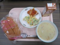 ★今日のメニュー★・黒パン・コーヒーミルク・さつまいものクリームスープ・鶏肉のマ...