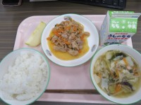 ★今日のメニュー★・ごはん・牛乳・白菜と肉団子のスープ・野菜チヂミ・ホイコーロー...