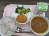 ★今日のメニュー★・麦ごはん・牛乳・チキンカレー・野菜コロッケ・小松菜とわかめの...