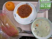 ★今日のメニュー★・コッペパンスライス・牛乳・クリームシチュー・スラッピージョ―...