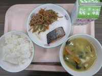 ★今日のメニュー★・ごはん・牛乳・さつま汁・さわらのスタミナ焼き・五目きんぴら
