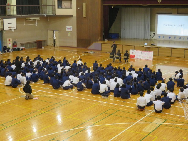 生活の様々な場面で、私たちが当たり前に過ごしていることでも、視覚障がいや聴覚障がいの方にとっては困っている、ということを聞き、いろいろな視点で物事を見て、思いやりの気持ちをもつことが大切だと感じました。また、視覚障がい者の方にとって、声をかけてもらうことはうれしいことだけれど「ここから階段です。」というだけではなく、「ここから上り階段です。」と言ってもらわないと不安になったりけがにつながったりすることもわかりました。