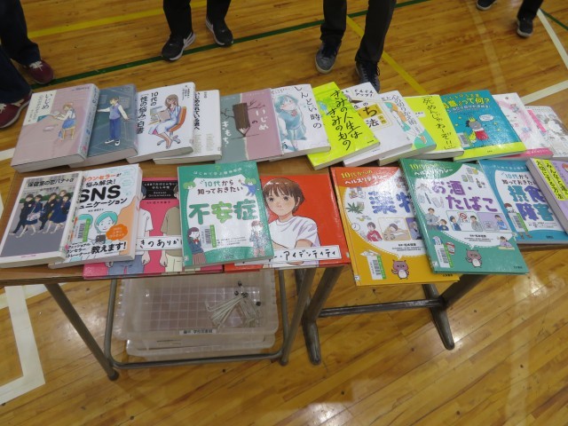 1年生の該当クラスが、午後残って【心の不調や病気と適切な対処方法について学習しよう】という課題で体育館にて2時間授業。