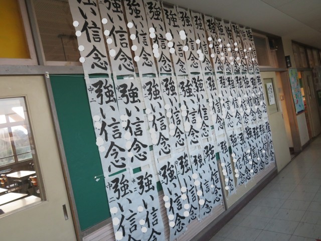 学校の冬の風物詩 公開日 2026/01/21 更新日 2026/01/21 お知らせ 廊下に書きぞめが張り出されています。授業や冬休みに頑張った力作がずらり。学校の冬の風物詩、みなさんよくがんばりましたね。