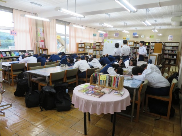 ※写真2枚目…図書委員会の目標決めの様子(多数決かな…?)