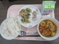 ★今日のメニュー★・ごはん・牛乳・鶏肉とさつまいもの旨煮・シューマイ・小松菜とツ...