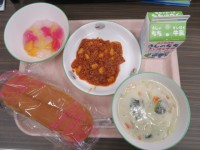 ★今日のメニュー★・コッペパンスライス・クリームスープ・チリコンカン・フルーツポ...