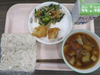 ★今日のメニュー★・地粉うどん・牛乳・けんちんうどん・みそポテト・のらぼう菜のお...