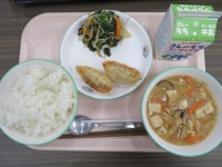 ★今日のメニュー★・ごはん・牛乳・マーボ豆腐・揚げぎょうざ・ナムル今日は中華メニ...