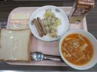 ★今日のメニュー★・食パン・コーヒーミルク・ミネストローネ・ウインナー・ジャーマ...
