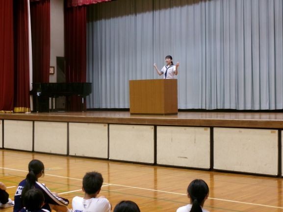 学校朝会 公開日 2025/09/30 更新日 2025/09/30 お知らせ 9月30日(火)の朝は、学校朝会が行われました。英語弁論大会の表彰及び代表生徒による大会当日の弁論発表が行われました。素晴らしい発表に、生徒たちから拍手喝采が起こりました。