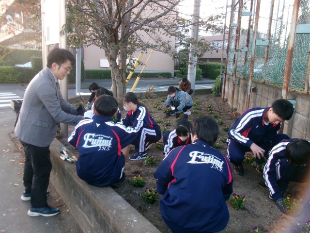 美化委員会、PTAの皆様にご協力いただき、花いっぱいの花壇になりました。