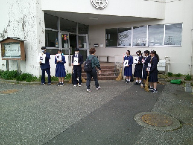 4月1日朝 生徒会本部役員のみなさんが着任する先生方をあたたかく見守ってくれました。