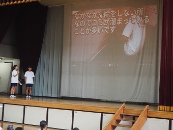 特に、+α清掃について具体的に説明してくれました。一人ひとりが、1か所+α清掃することで、全校生徒数分の場所がきれいになります。それを継続していくと考えると・・・とてもすごいことになりますね。