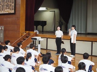 そして、将来養護教諭を目指す2人の教育実習生が、8日(月)から3週間実習を行います。朝会で自己紹介をしてもらいました。よろしくお願いします。