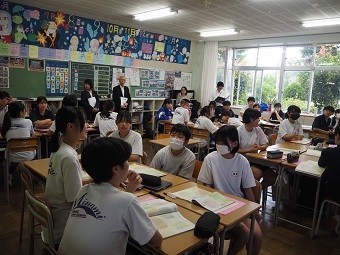 今日は、2年に一度、西部教育事務所と鶴ヶ島市教育委員会の指導主事のみなさまが、学校に訪問し、生徒や授業の様子を参観にいらっしゃる一日でした。総勢19名の方々から、多方面にわたりご指導いただきました。