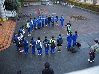 いよいよ当日の朝を迎えました。南中駅伝部が出発しました。