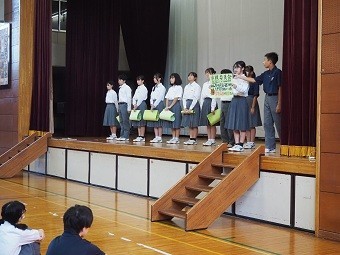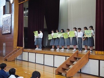 今日の朝会では、各委員会、部長会の目標を発表。堂々と発表する姿に頼もしさを感じました。