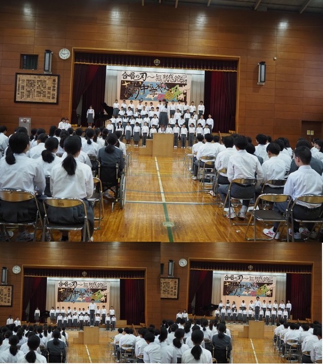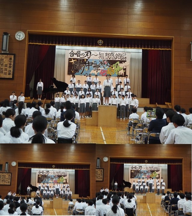 合唱の刃~無限感銘編~ 公開日 2025/10/28 更新日 2025/10/28 お知らせ 10月25日(土)今年も、感動いっぱいの合唱祭となりました。そして、3年2組、2年2組が31日に行われる市内音楽祭に南中代表として出場します。 +1