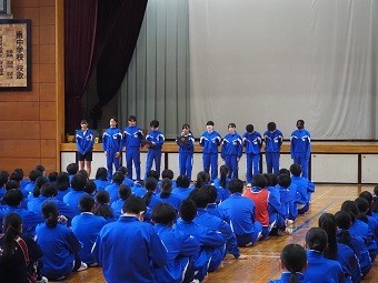 まずは、生徒会本部役員から一日一日を大切に過ごしていきましょうというお話と、1・2年生の期末テストに向けて翔南ルームと図書室を学習室として開放することについての連絡がありました。