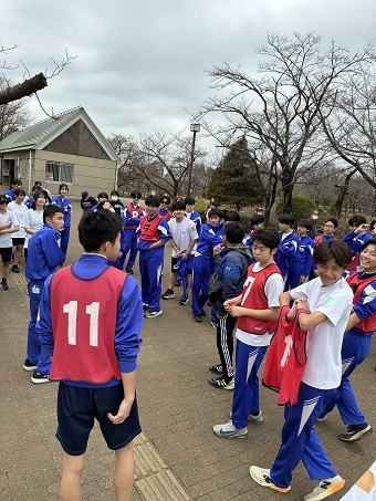 運動公園で逃走中 公開日 2026/03/02 更新日 2026/03/02 お知らせ 3月2日(月)鶴ヶ島市運動公園全体を使って、3年生は学年レクを行いました。走力に自信ありの7名の生徒たちがハンター役として運動公園に放たれました!思ったよりも早いスピードで逃走者たちが捕まってしまいましたが、脱走も可能なため、脱走→捕獲を繰り返していました。最後まで捕まらなかった逃走者は4名。10人以上捕獲したハンターは5名。この9名には、これからの給食でお代りする権利が贈呈されました。